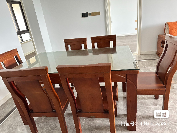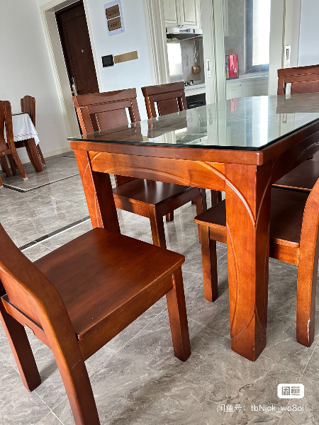 急售!要搬家不方便带走。九成新,全实木餐桌椅,一桌六椅,加3C钢化膜玻璃面板。便宜卖1680。可实地查看后再买。 联系我时,请说是在今启网看到的,谢谢!